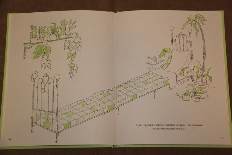 В рейтинге книг, который прочитал сам, поставил Криктора на первое место. Хотя объяснить толком, что понравилось, не смог. Просто забавная история и смешные картинки - особенно кроватка у Криктора понравилась и запомнилась.