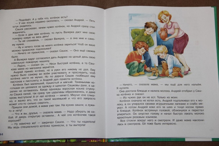 Она такая детская и добрая, не супер веселая, не поучительная, не занудная, а вот именно просто добрая. Автору как то удалось просто рассказать об обычных днях обычного паренька, о том, как он с отцом ходил в лес или ездил на рыбалку, как строил гнездо для аистов, а в итоге там поселилось воробьиное семейство и он о них заботился, как искали котенка, чтобы он зализал разлившееся на кухне молоко, ведь затирать то жалко, добро такое пропадает, как из обычной банки делали копилку и какая у нее была дальнейшая судьба, о том, как Сашок с другом играли в танкистов и снайперов, прячась под столом, о живой рыбке в тазике, о письме из Африки от слонят и многое другое. Ничего особенного, но как то по-доброму. Я думала у меня одной такое впечатление было от книги - спокойно-приятное, спросила у Глеба - он стал перечислять рассказы, которые понравились и в итоге сказал, что вся книжка очень хорошая была.
