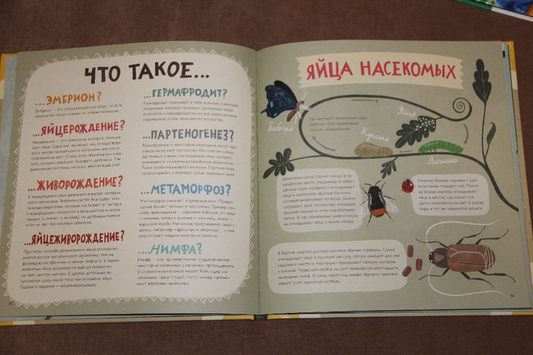 Начали читать после Эдварда, вроде как в тему было про яйца почитать. Многое пропускала, иногда целыми разворотами. Написано интересно, но много информации с моей точки зрения для моего 6-летки пока лишней. Про зародышей, про яйцеклетки и оплодотворение и подобные темы пропускала. Интересно было почитать разные факты - например, что птенец, когда вылупляется из яйца, разбивает скорлупу специальным наростом на клюве - яйцевым зубом, который потом отпадает, углубление в яйце с тупой стороны содержит воздух для дыхания птенца и т.д.