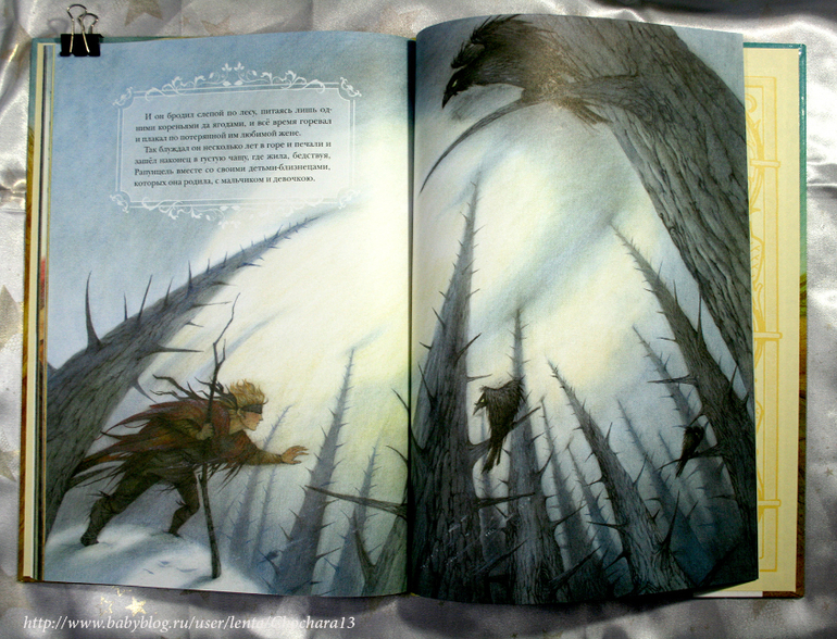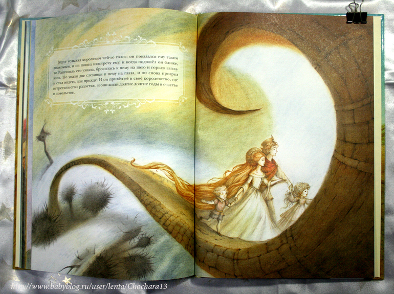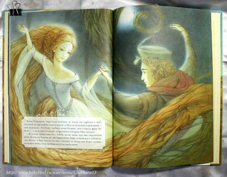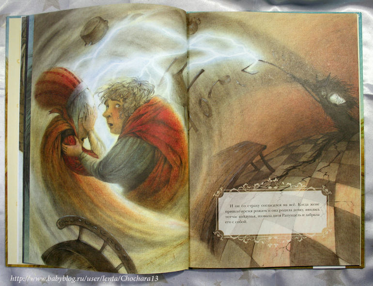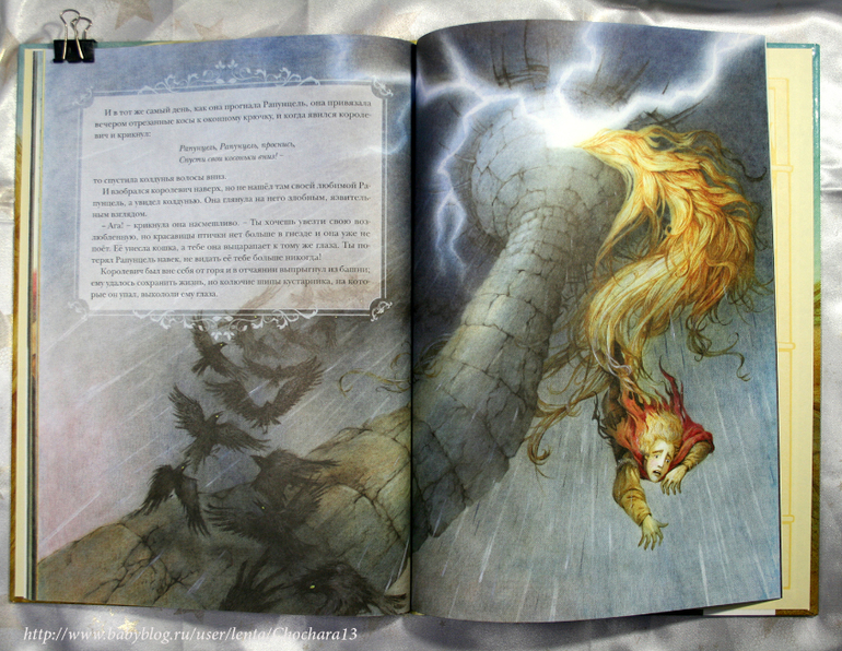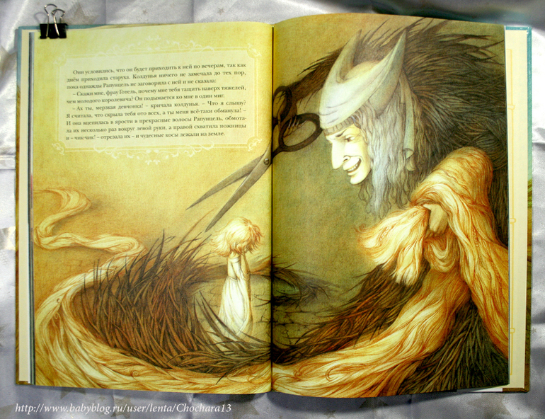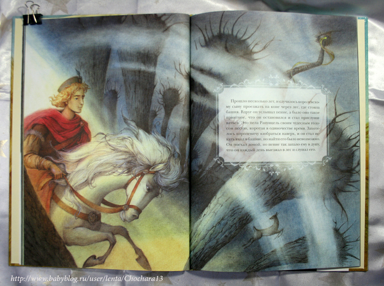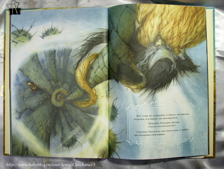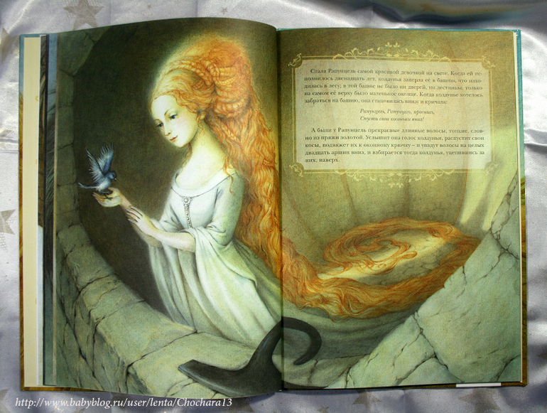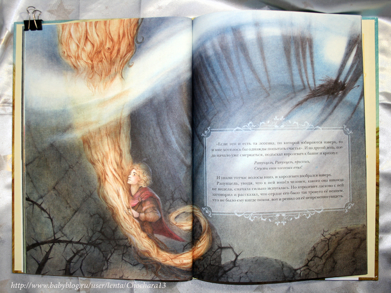 Согласна, сказка не по возрасту. Но именно эта книга очень адаптированна. Текста там совсем немного. Зато какие потрясающие развороты. Какие волосы, шипы и башни!