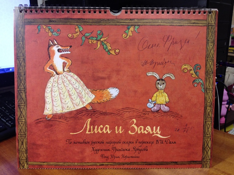 Иллюстраторы (красивые иллюстрации)Наконец-то мне привезли из Питера долгожданный календарь-книгу, подписанный Юрием Норштейном, со сказкой "Лиса и Заяц" (или "Заюшкина избушка") в пересказе В.И. Даля, с прекрасными рисунками Франчески Ярбусовой.