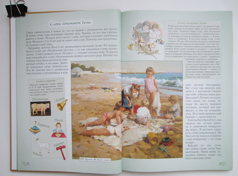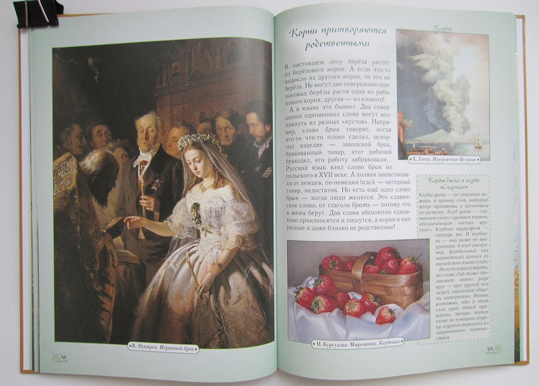 А затем истории происхождении разных слов, расположенных по тематическим группам: животные, растения, названия профессий, интересные вещи и одежда, еда, слова, появившиеся не так давно. И всё это интересно, легко, временами весело!