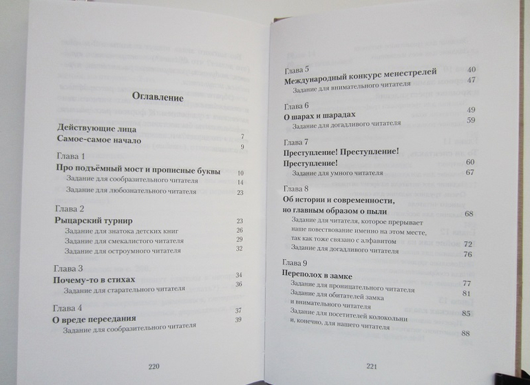 Начало книги: гости съезжаются в замок, но мост не опускается. Для того чтобы попасть туда, нужно выполнять задания всем гостям по очереди.