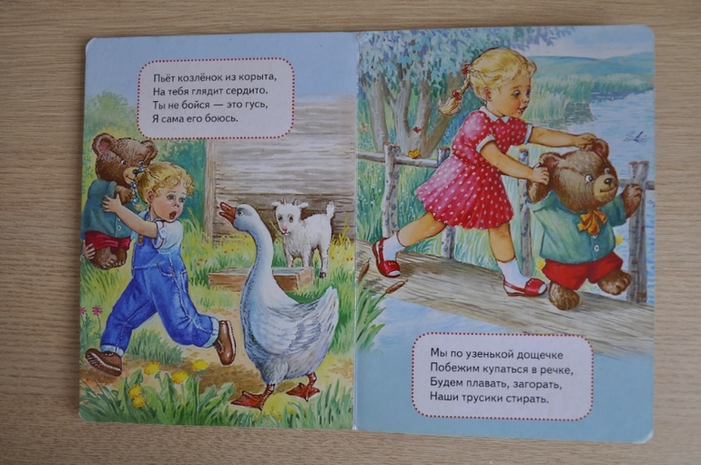 Под ужаснейшей обложкой книги скрываются приятные иллюстрации и очень легкий, доступный для понимания ребенка стих.