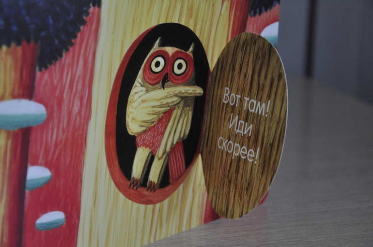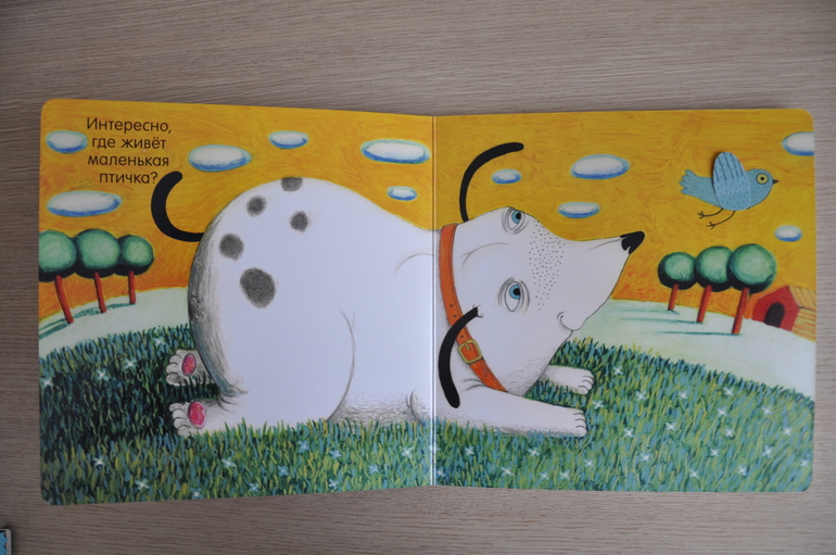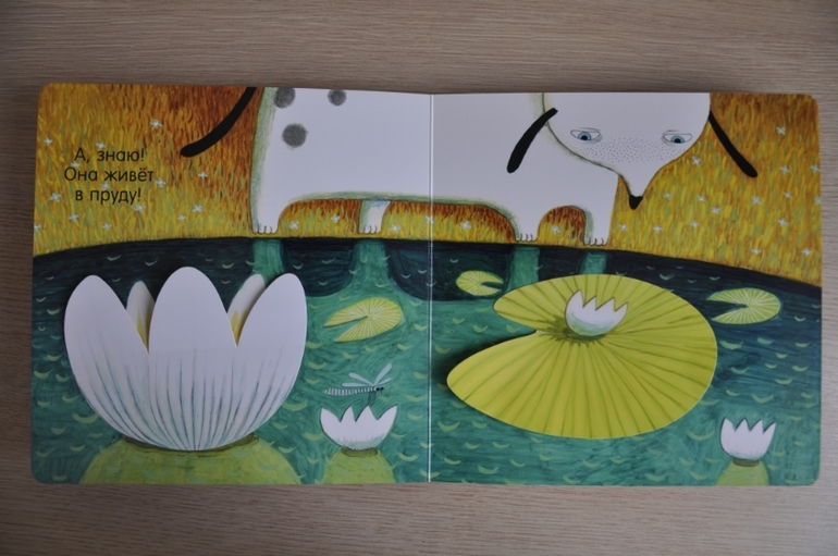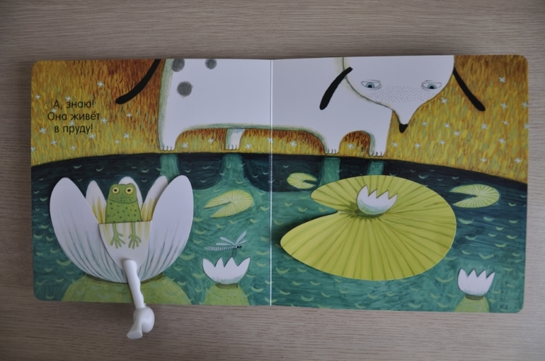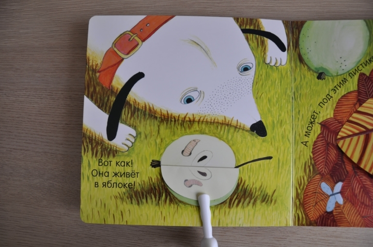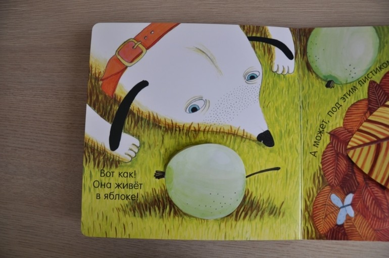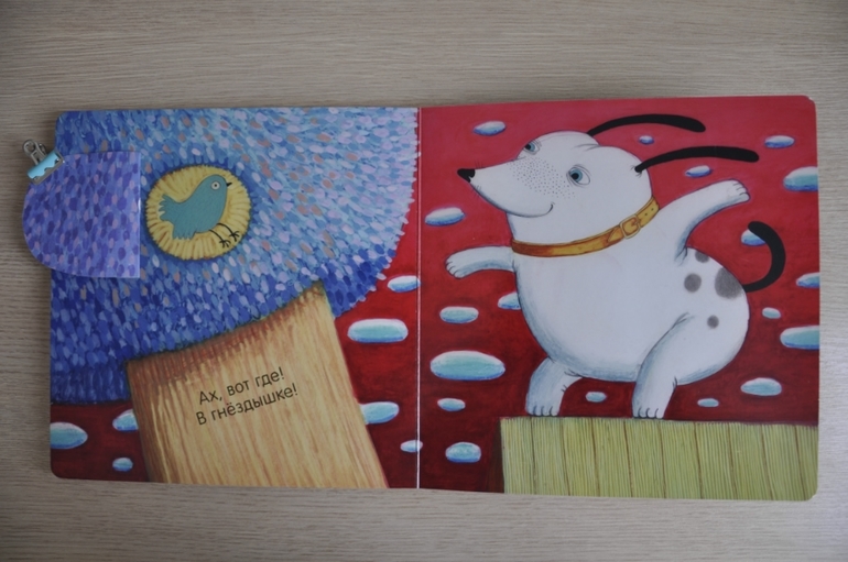 Суть проста: собака ищет птичку. Заглядывает под листики/кувшинки/в норы и, наконец, находит. Миссия выполнена, можно и спать спокойно лечь. Дочь сначала изводила меня: по 15 раз на дню надо было помогать искать собаке птичку, сейчас остыла, но всё так же с удовольствием открывает окошки и стучится к сове.
