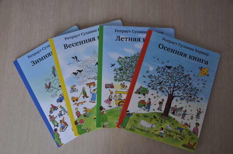 Иногда хочется, чтобы папа ушёл гулять с ребенком на часок (ну, или инопланетяне бы похитили их на этот часок...), а я раскрыла все книги и жадно рассматривала сюжетные линии... Вот все книги на одном развороте (по порядку от зимы до осени):