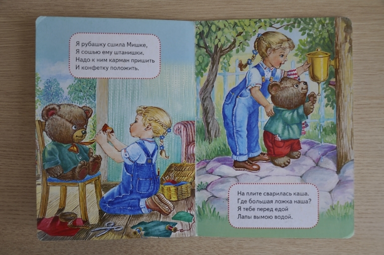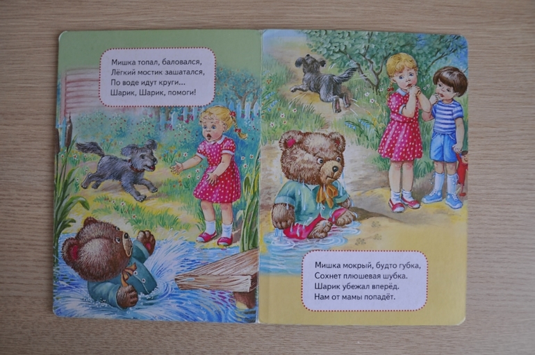 Я могу процитировать любую строчку этой книги (например, я просто ни с того ни с сего говорю: "Мишка топал, баловался...") и ребенок безошибочно принесет мне первоисточник (правда, эта фишка у нас и с другими книгами прокатывает:)) За такие деньги - просто клад! (после этой покупки я поняла, что грех брезговать недорогими картонками)