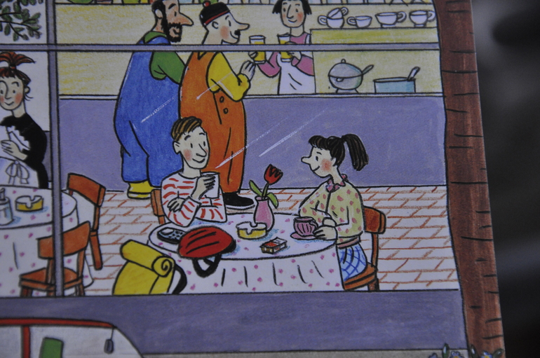 В конце книги (=в конце этого дня) они уже за столиком в кафе с тюльпаном в вазе: