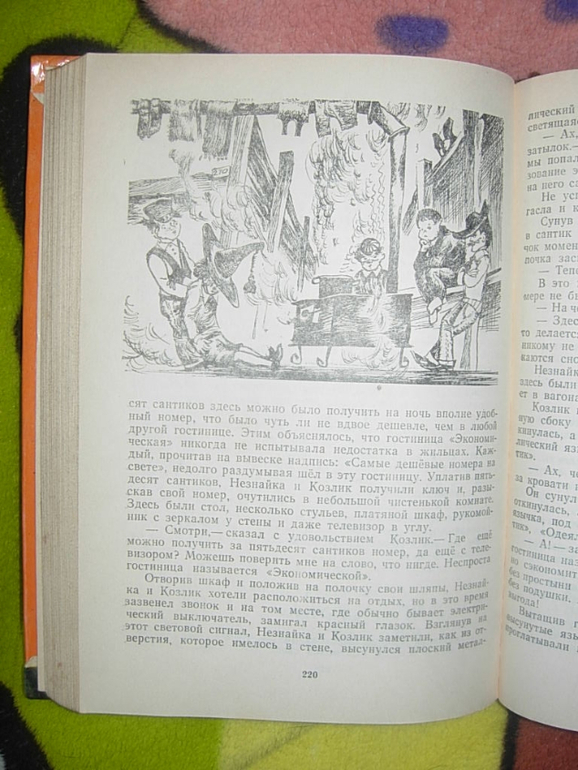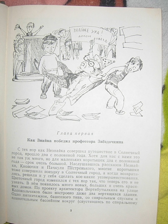 Спасибо, что показали, какие еще бывают Незнайки. И про ошибку в тексте правильно заметили. Но лично мне эта книга 1981 года совсем не понравилась. Честно. Отдала бы без сожаления. От времени текст побледнел и стал нечитаемым и иллюстрации из серии "лучше бы их не было вообще".  Я тоже, как Вы, покопалась в букинистике. Выбор невелик. За "Незнайку на Луне"  1960гг в отличном состоянии просят больших денег, не вижу смысла. Куплю у "Эксмо" и поправлю корректором.