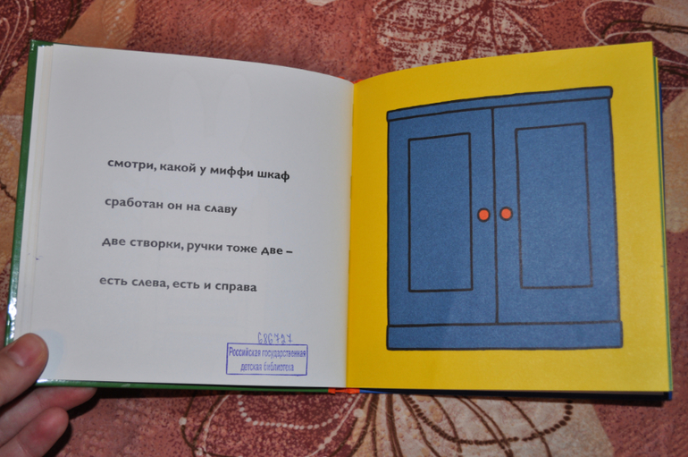 для самых маленькихДля Светы мы с Соней в РГДБ взяли книгу про Миффи. Я читала про эти книги на Папмамбуке еще беременная Светой, но цена в Лабиринте меня отпугнула. А тут увидела эту серию в РГДБ, и сразу же взяла одну книжечку на пробу. Такая классная оказалась, такая малышковая! Года на 1,5-2, максимум 2,5, наверное. Нашей очень разборчивой Свете книга пришлась по душе, часто читали за этот месяц, на выходных повезем сдавать и, надеюсь, возьмем еще одну из серии. Вот вся книга на фото: