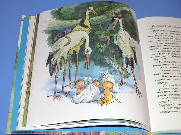Во-первых, она нудноватая. Во-вторых, не понятно чему учит... Летит аист, несет долгожданных детей родителям ... Мало того, что младенцев девочки решают оставить себе, но вскоре им самим становится эта ноша не по силе. Они и беруши в уши - спать то хочется... А дети плачут! И соседу бедных малышей спихнуть хотят.... Старика таскают за бороду... А потом ещё и собака вскармливает младенцев молоком... Господи! Собака оказывается человечнее людей... Нет! Я поняла, что эту книгу детям в руки я не дам.