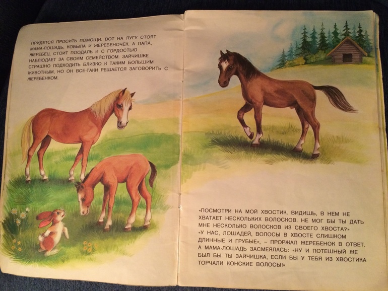 А это книжка из моего детства. Моя мама говорит, я просила читать про Зайчишку-пушишку каждый день на протяжении нескольких лет и, если мама хоть в одном слове ошибалась, исправляла ее. Теперь настал мой час расплаты)))) Настя любит книжку не меньше меня маленькой.