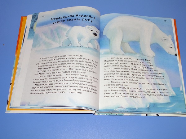 Для малышей - просто прелесть. По ходу текста есть ещё стихи, песенки и колыбельные. Каждая история короткая, не затянутая. Шрифт приятный.