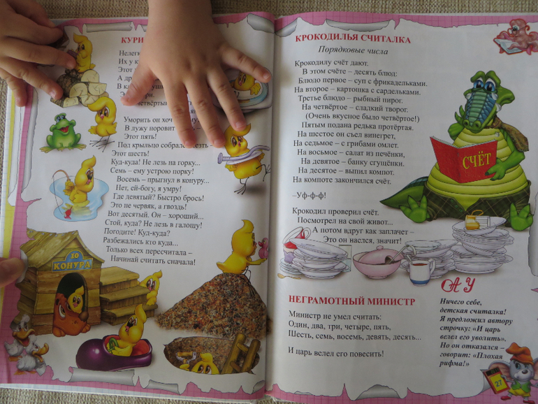 Ужасные иллюстрации, не понимаю, что он понимает из таблицы умножения и примеров вычитания в стихах, но тем не менее книга в любимчиках. Читаем в последнее время в основном её и Кротика. Ещё одна книга осталась от дочки , и не смотря на то, что я не люблю сборники, этот очень удачный.