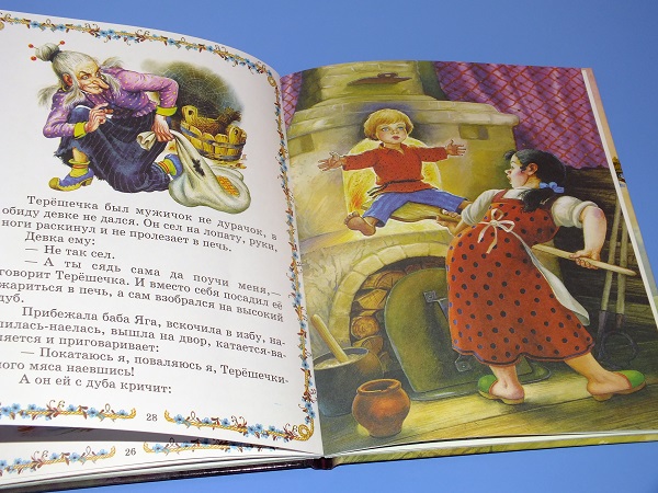 Младшая дочка сразу сказала: "Бабку Ягу". Неожиданно было для меня. Пересмотрела кучу книг и наткнулась на эту. Прочитала несколько отрывков и поняла, что в детстве у меня были именно такие варианты сказок. Я бы не сказала, что она какая-то сильно кровожадная. Мне такие же сказки читали.