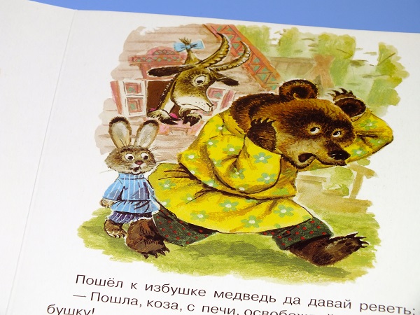 Уж больно понравился нам зайка на картинке. Сказку до этого не читали. Оказалось, вариация на тему "Заюшкина избушка"
