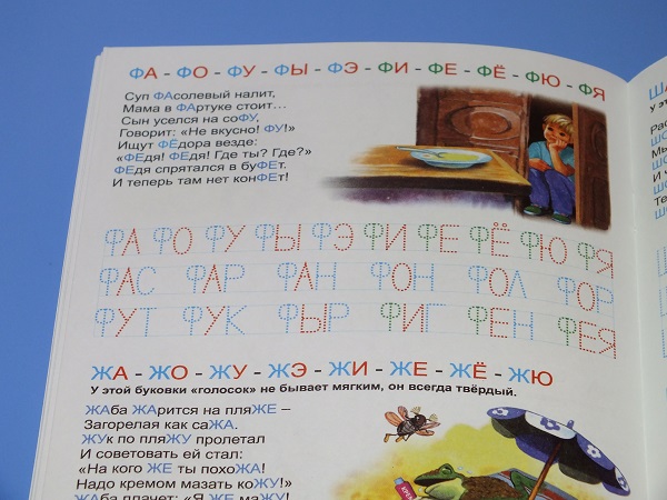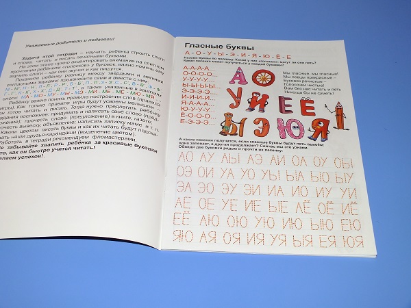 В книжечке стихи есть неплохие. Отработка гласных букв. Потом работа со слогами: главная+согласная, согласная+гласная, слоги с мягким знаком.