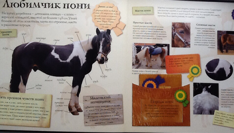А вот и любимчик пони. Можно узнать больше об этом животном: изучить его строение, масти и различные породы.