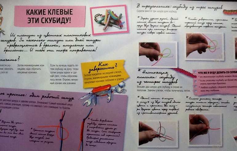 На этой страничке можно научиться плести скуби ду. Их плетут из цветных пластиковых шнуров.