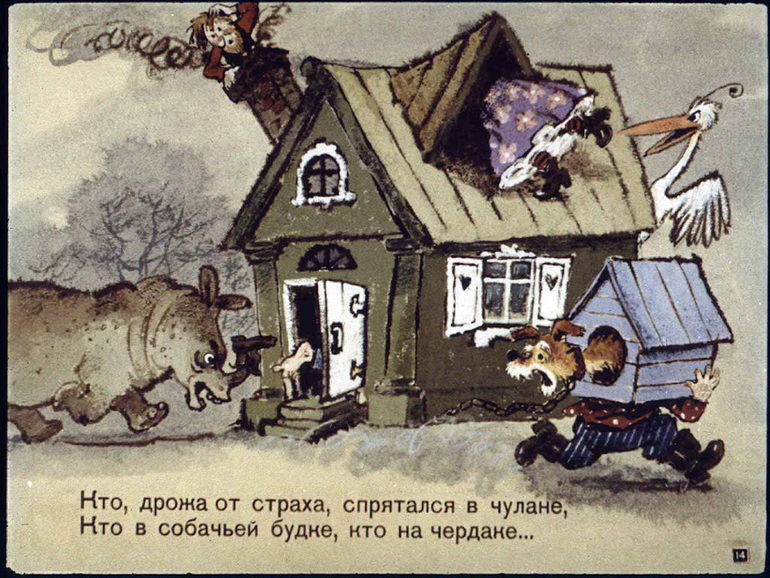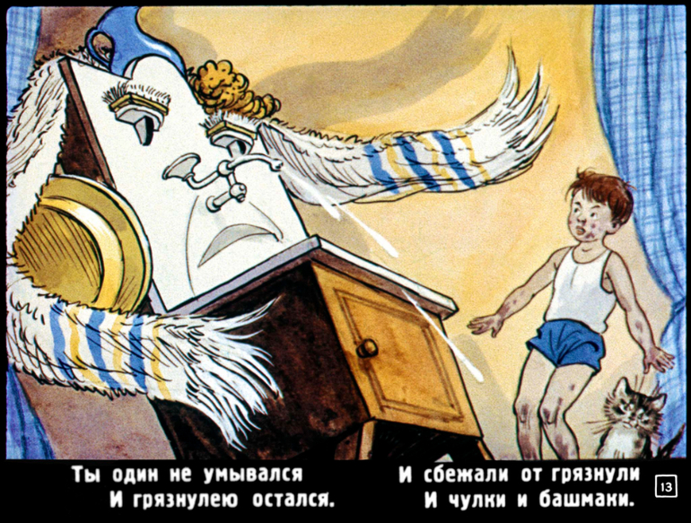 Идеальный для меня "Мойдодыр". Снова все в точности нарисовано, все эти непонятные "кочерга за кушаком", и зубной порошок, и корыто и с лоханью. Разве что ограду Таврического сада не узнаю - вот к чему приходится придираться.