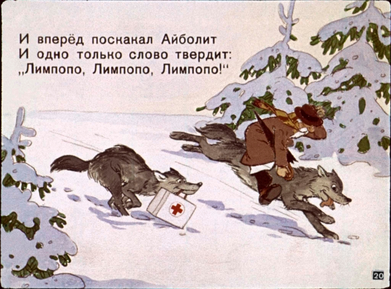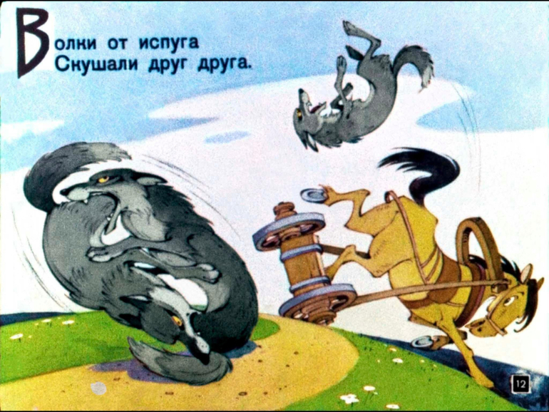 Стихотворение в диафильме сокращено, но все равно - две части и больше ста рисунков.