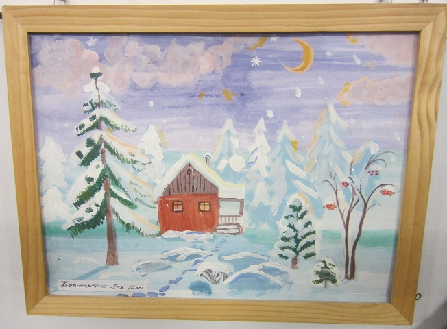 К открытию выставки было приурочено награждение учеников воскресной школы, пробующих свои силы на пути художников. Сфотографировала несколько работ. Во время награждения хотела запомнить имена-фамилии, чтобы потом посмотреть, кого же отметило жюри во главе с Михаилом Абрамовичем....но вылетело из головы(