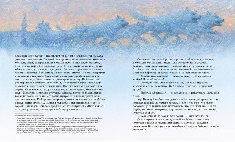 Мы взяли за основу лучший и наиболее точный, на наш взгляд, перевод «Снежной королевы» на русский язык, выполненный 120 лет назад супругами Анной и Петром Ганзен, переработали и отредактировали его, приведя в соответствие с нормами современного русского языка.