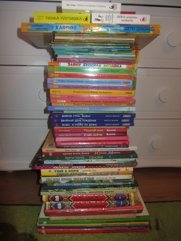 Итак, вот наша стопка от 1,5 до 2-х лет(думала, что будет немного - ошиблась:)) Хотя нет предела совершенству, конечно) В этим книгам мы периодически возвращаемся и сейчас.