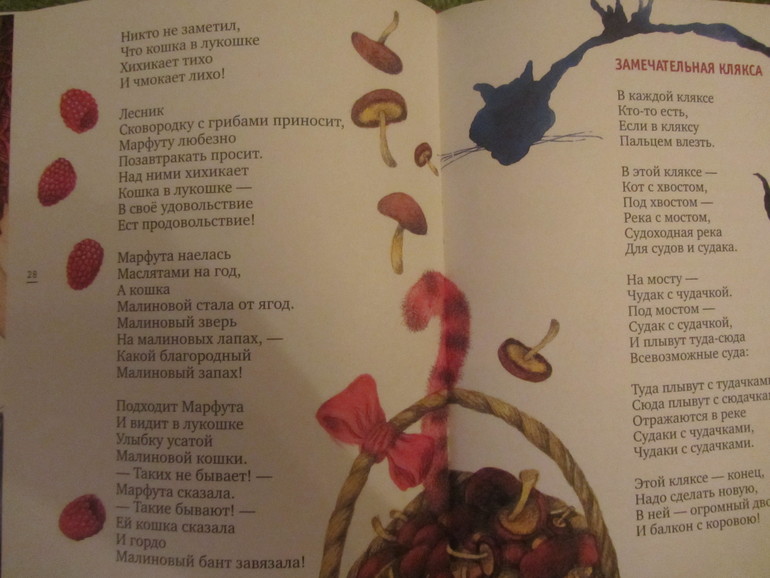 И в довершение всего моя любимая Юнна Мориц, которую мы читали с дочкой чуть ли не с самого рождения. Читали, когда ели, купались, гуляли. "Пузатый чайник" И "Малиновая кошка" наши хиты, да и все прочие ее ранние стихи пользуются у нас в доме заслуженной любовью у всех. Стихи просто гениальные, хотя и не всем понятные.