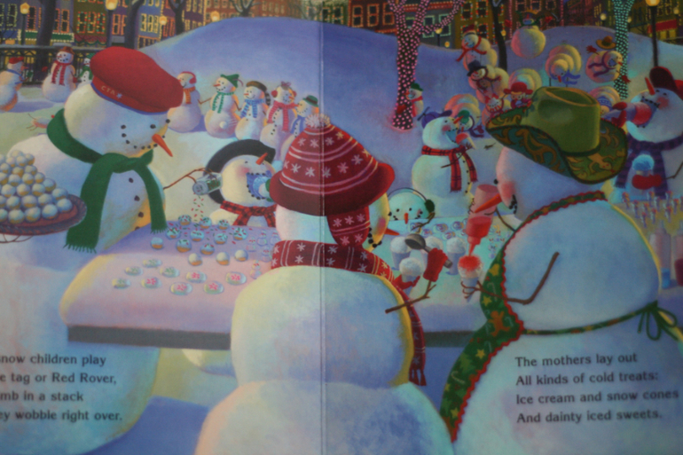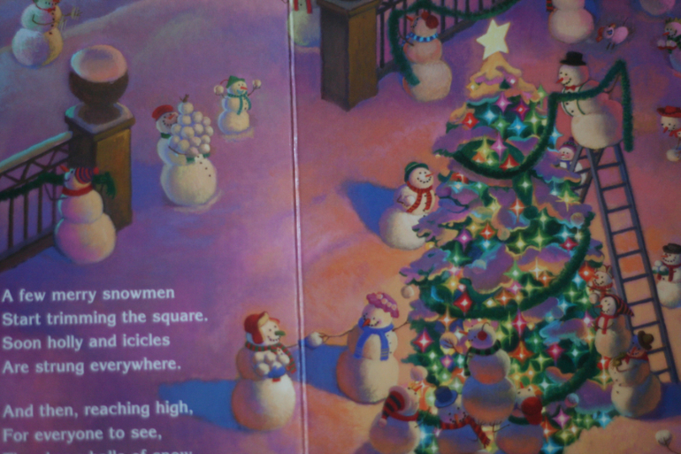 Первая открывает нам большую тайну - оказывается Снеговики тоже отмечают Новый год, когда все ложатся спать. Они собираются все вместе, украшают ёлку, водят хоровод, катаются с горки, едят снежные вкусняшки и ждут ледяного Дед Мороза, чтобы получить подарки и разойтись по домам.