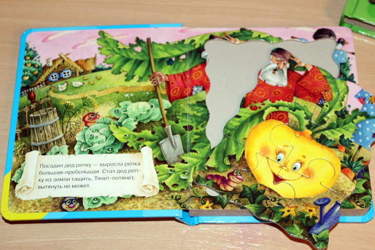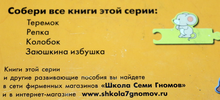 Следующая серия книг идёт для деток 3+. Но моя дочка уже легко собирает эти пазлы, а сюжет книг знаком нам всем с самого раннего детства.