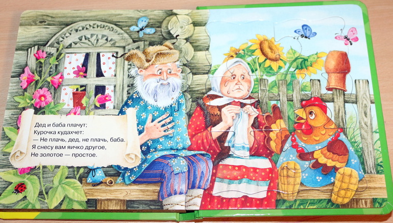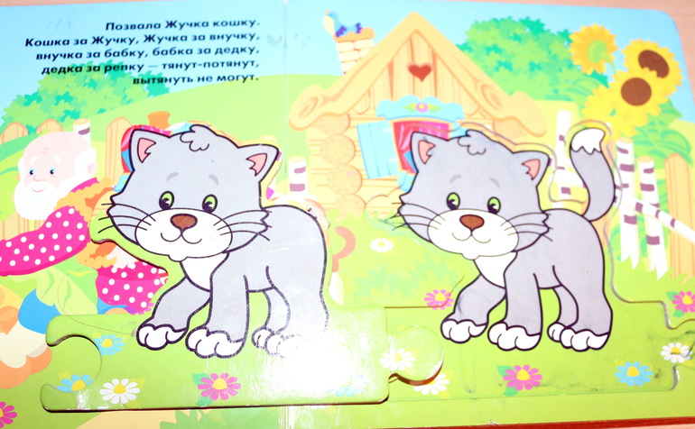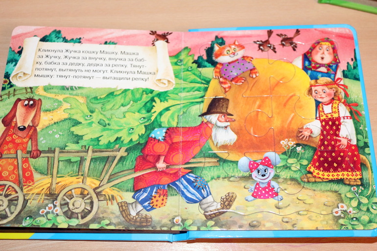 Так как герои изображены не только на пазле. Ребенку легко понять, на какой странице живет какой персонаж, когда он соберется расставить всё по местам.