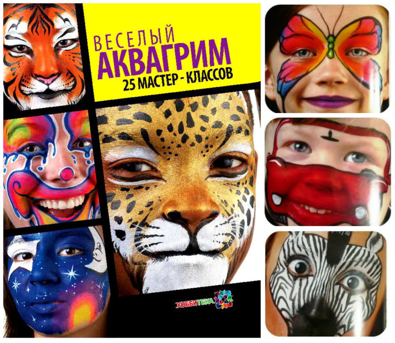 развивающая/развлекающая литератураРаньше я рисовала в основном по картинкам настоящих животных, но в прошлом году купила книгу по аквагриму для детей и сегодня мы ее опробовали .
