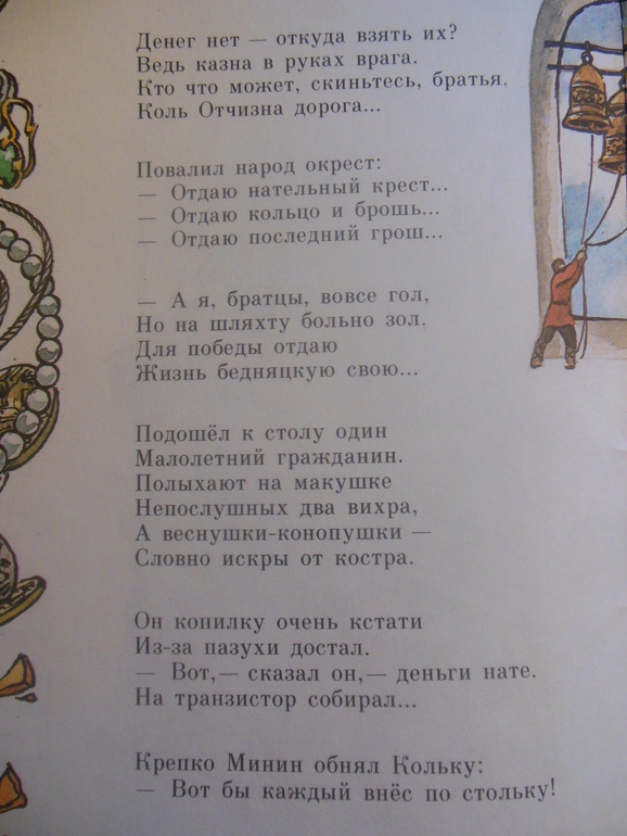 И мальчик, путешествующий во времени (по событиям времен, когда нужно было защищать свое государство), тоже активно участвует в тех событиях. Вот, к примеру, на призыв Минина: