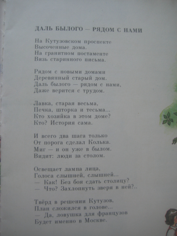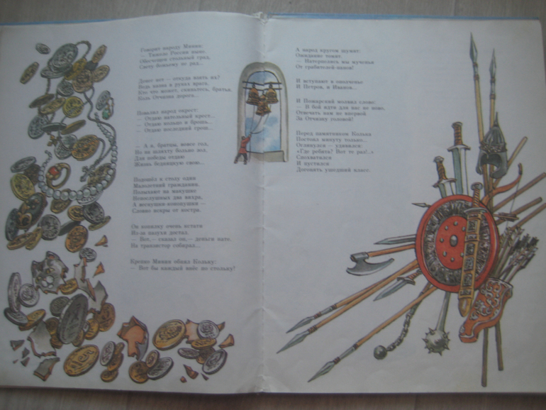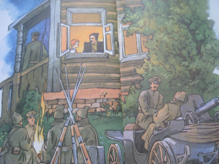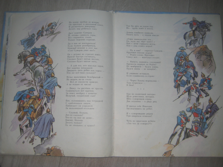 Мальчик читает историческую книгу и ТАК ярко представляет описанные в ней события из прошлого, что сам попадает в прошлое и общается с героями тех событий. В книге описываются события нашествия Мамая, восстания Минина и Пожарского, рассказывается о суворовцах и Суворове, Кутузове и Наполеоне, Петре I, событиях 20-го года XX века, Чапаеве, Великой Отечественной Войне, о 3 богатырях, Гагарине, Ленине, о Гражданской войне. Предлагаю посмотреть иллюстрации и потом покажу некоторые тексты.