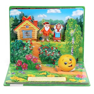 Вот с этой книжкой я прогадала, она конечно пригодится, но не на первое время, уж сильно панорамка хлиплая, выдернуть легко. Маленько текст изменен, а так сыну очень даже нравится рассматривать объемных персонажей.