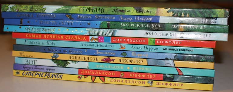 Удивительно, но только с трех с половиной лет у нас вдруг пошла Дональдсон. Нет, мы и до этого иногда читали Груффало, Улитку и другие ее книги, но особых восторгов у дочки не возникало. А здесь Ксюша наконец-то распробовала, причем все и сразу, сейчас тоже периодически возвращается.