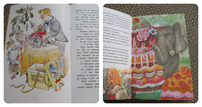 Куприн. Слон. Начали читать книжку тоненькую (серия Книга за книгой), потом я забрала книгу изд-ва Эксмо (купила в СП), дочитывали из неё. Там, правда, более топорные иллюстрации. Ксюхе там очень понравились пирожные. После прочтения Ксюха стала говорить "Слон".