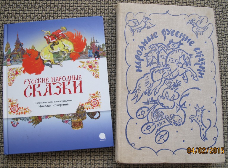 Из сказок с иллюстрациями Кочергина прочитали "По щучьему веленью" . А вторая книга - отдали знакомые пару лет назад - сказки из сборника А.Н. Афанасьева с иллюстрациями Мавриной, тканевая обложка. Иллюстраций, правда, очень мало. Так вот, Соня её любит просто донельзя. Чуть только где заметит - всё, тащит. А вот мне её читать напряжно - сказки, так сказать, не совсем адаптированные для детей.