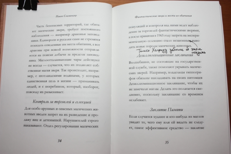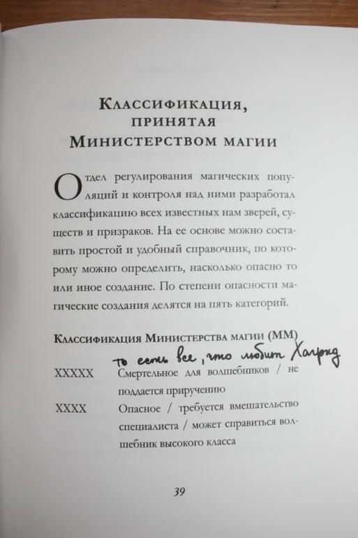 Конечно, прочитать я её ещё не успела. Уже предвкушаю вечер, когда смогу наконец в очередной раз окунуться в мир волшебства и чудес. Но наскоро просмотрела. Как мне всё нравится! И бумага как я люблю: офсетная, плотная, матовая. И текст крупный. И эти чудесные "исправления", рукой полюбившихся персонажей поттериады: