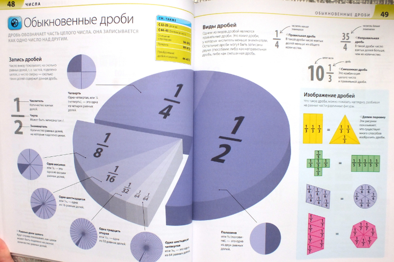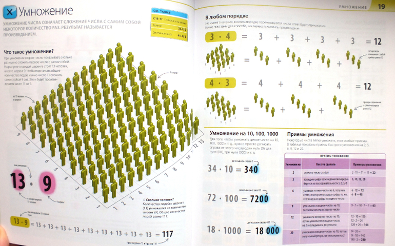 Очень понравилось, как в книге представлены некоторые моменты. Например умножение, степени, дроби. Просто и понятно.