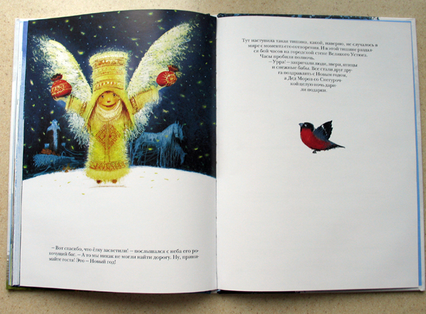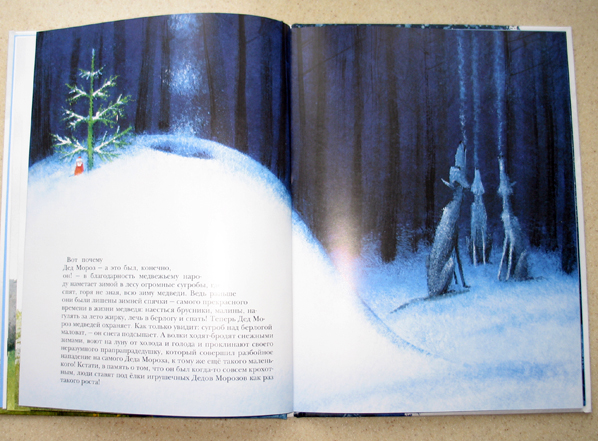 Когда через пару дней я снова оказалась в Ашане, книгу нашла с трудом. В наличии их осталось только три и их бочком втиснули между другими книгами. И я решила почитать. Прочитав три страницы, я поняла, что мне нравится, ведь написано легко, с юмором, по-современному. Я бы сказала, такая современная легенда о том как Дед Мороз появился. Почему-то сразу вспомнила современные мультфильмы о трёх богатырях.