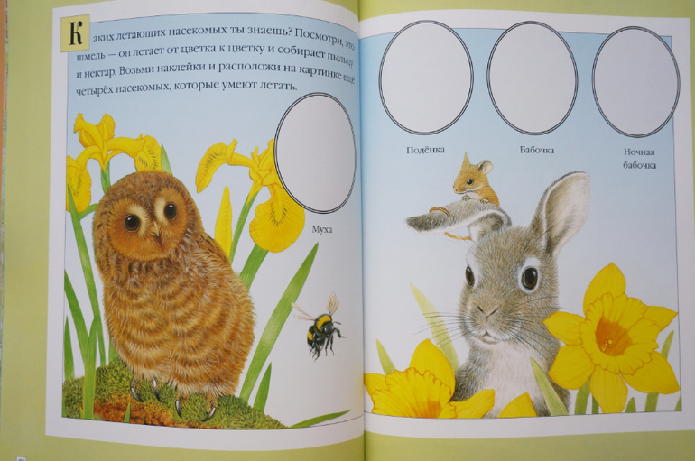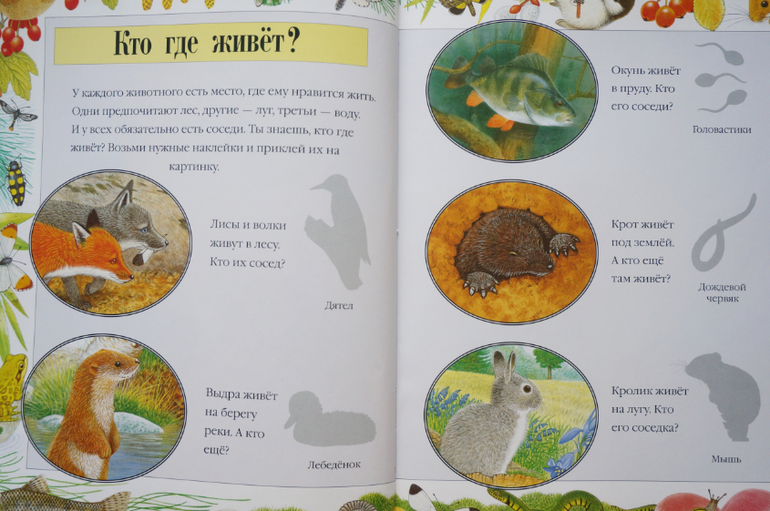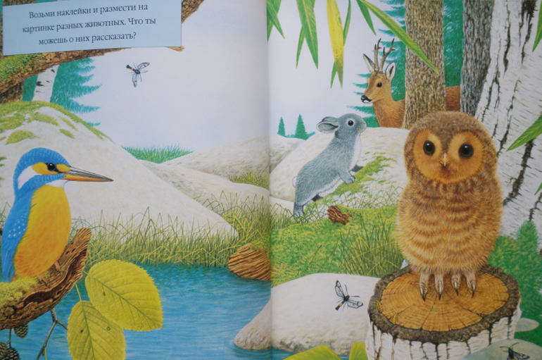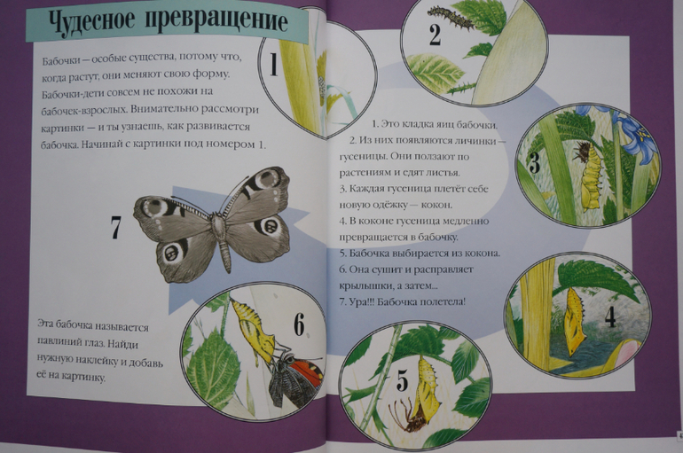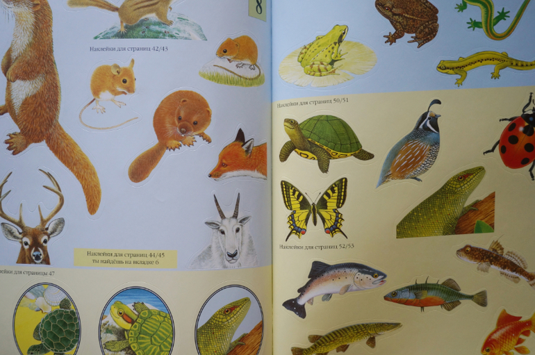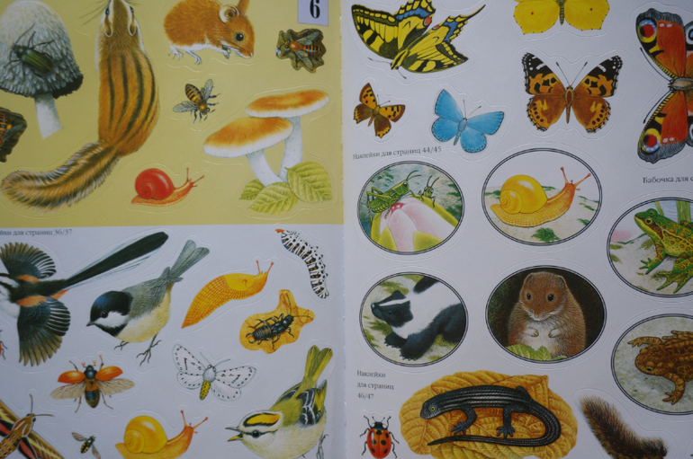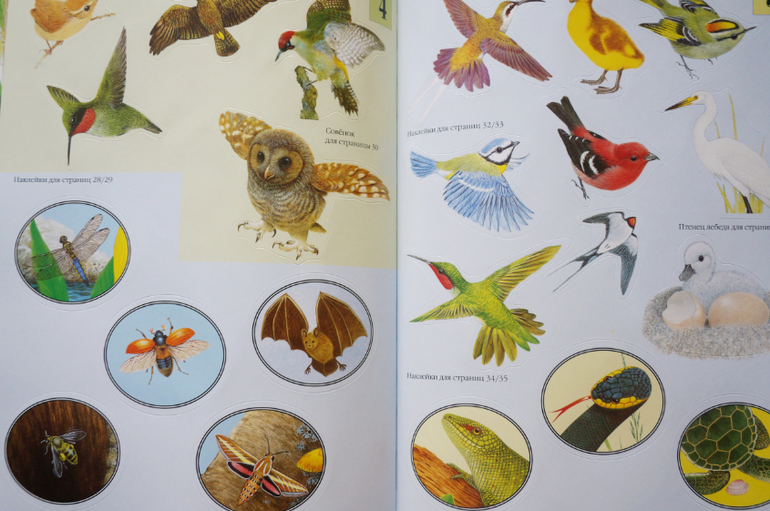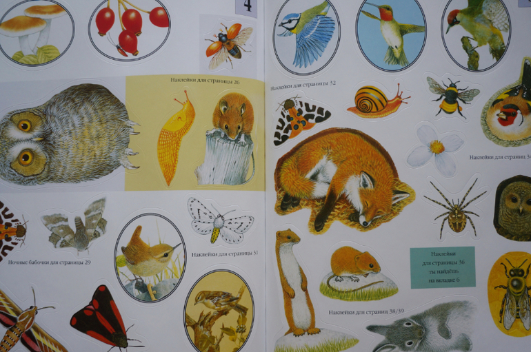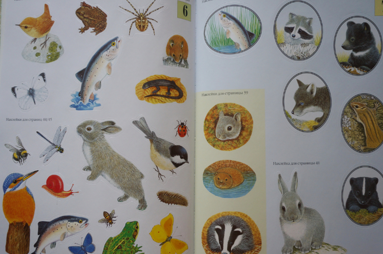 Прекрасные иллюстрации, животные прорисованы так явно, что кажутся живыми, их хочется даже погладить. Герои всегда помещены в какой-то контекст сюжета или в условия природы, что добавляет удовольствия при разглядывании. В книгах много познавательной информации о жизни животных, их росте, превращениях и трансформации. Внимание обращается на их образ жизни, привычки, похожесть на других! Наклейки можно клеить много раз, что важно для малышей, но при многоразовом пользовании они все же быстро теряют клейкость.Одним словом, серия чудесная, ее можно даже купить не рад наклеек, а ради красоты, гармонии и любования!