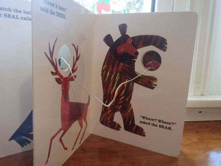 Книга - очередной гимн неистощимой фантазии Эрика Карла. Морской котик кидает мяч, который летит через страницы. Ве звери его пропускают, а в конце он попадает в сумку кенгуру. И та кидает мяч обратно. Книгу можно читать и с конца и с начала. Ваня гонял мяч по страницам как заправский футболист. А я снова думала, ну какой же он невероятный, этот Эрик Карл.