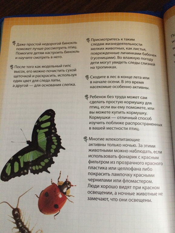 В общем книга классная, советую, особенно тем, кто планирует понаблюдать за миром природы с детками. Здесь много занятных предложений на эту тему.