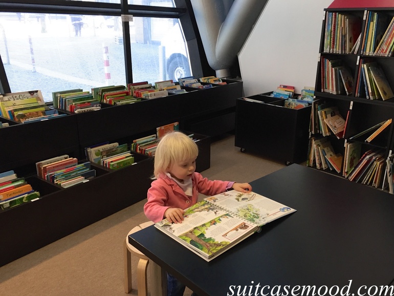 Когда Насте исполнилось 1,5 года, мы ввели традицию каждые две недели ходить в библиотеку. Для маленьких читателей здесь есть много интересного. Кроме непосредственно детского отдела, где можно взять «на прокат» даже настольные игры, регулярно проводятся экскурсии по библиотеке, чтения на разные темы и разных языках (например, немецком, итальянском и турецком), собрания для родителей с детьми, где они вместе играют, читают и мастерят. Я нередко вижу мамашек с детьми, у которых корзинки полностью нагружены комиксами, играми, дисками и книжками.