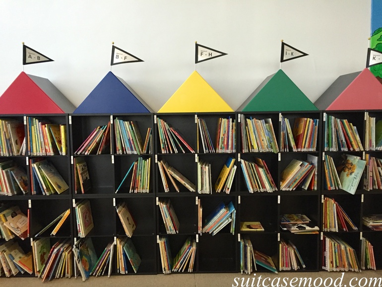 Полки и стеллажи невысокие, юные читатели сами могут до всего достать.