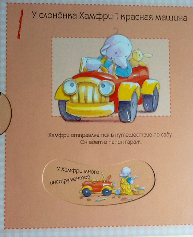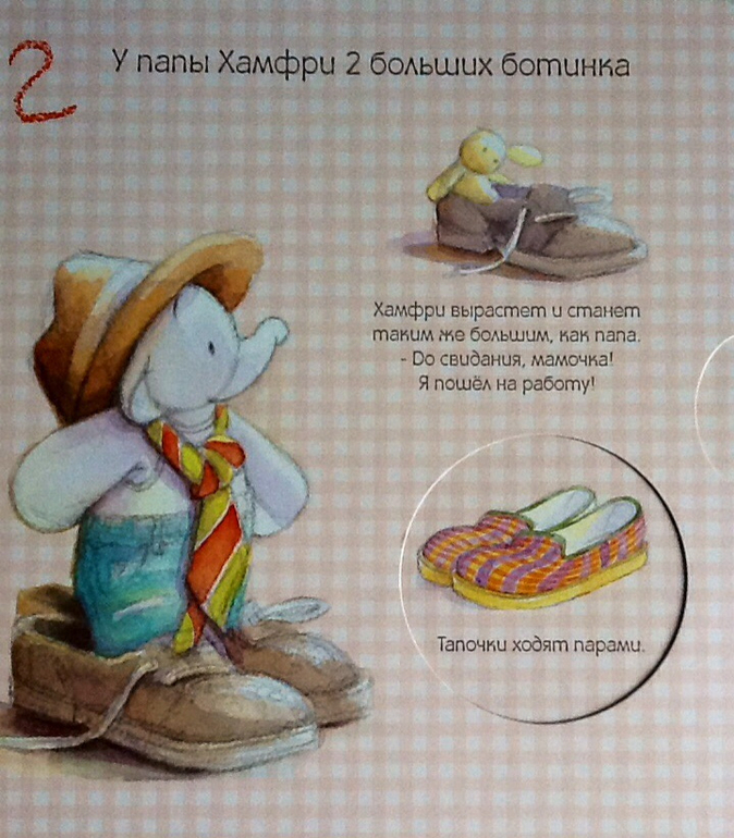 У слоненка Хамфри 1 красная машина. Хамфри мечтает поскорей вырасти и стать большим, как папа. Тогда папины тапочки придутся в пору маленькому слоненку.