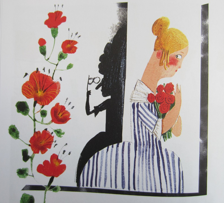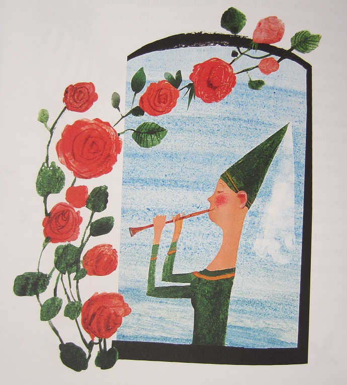 Розочки ещё эти заманивающие на обложке.... Можно и коня убрать, и парочку эту, но вот розочки.... "выдри глаз", но так притягивают))) Кстати,я их обнаружила в каждой сказке!!! Для меня это было такое радостное открытие! Не знаю, может быть об этом писали-обсуждали, но я пропустила. Но так как я "шла на розы", то внимание моё они привлекали сразу при перелистывании страниц. А потом стало интересно: везде ли этот лейтмотив ? Везде!!! Где-то яркий букет,где-то веночек, где-то просто выросли, а иногда - украшают туфли или пояс, или это рисунок на занавесочке))) В каждой сказке можно встретить эти розочки (на фото не все сказки-розочки, простор для поисков я оставила)!