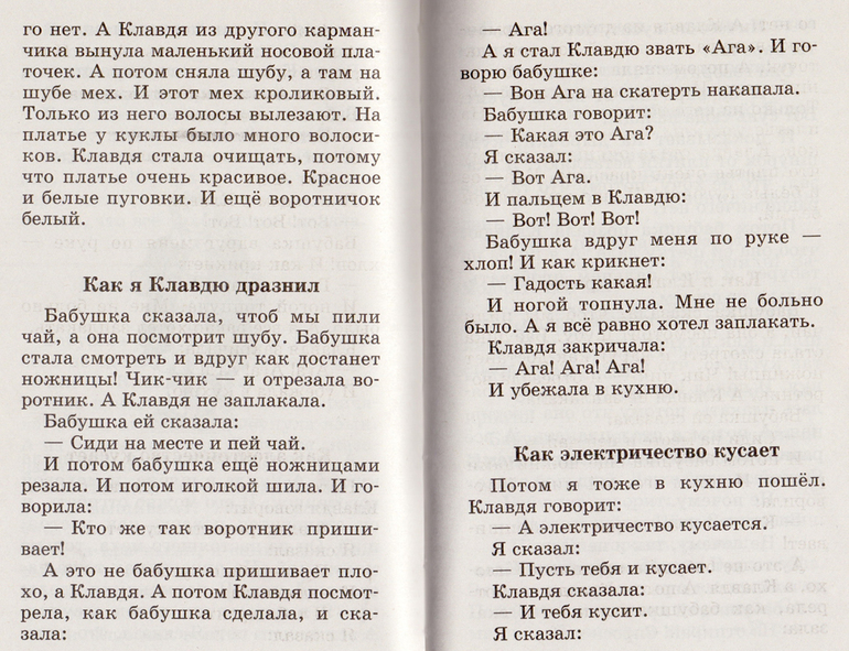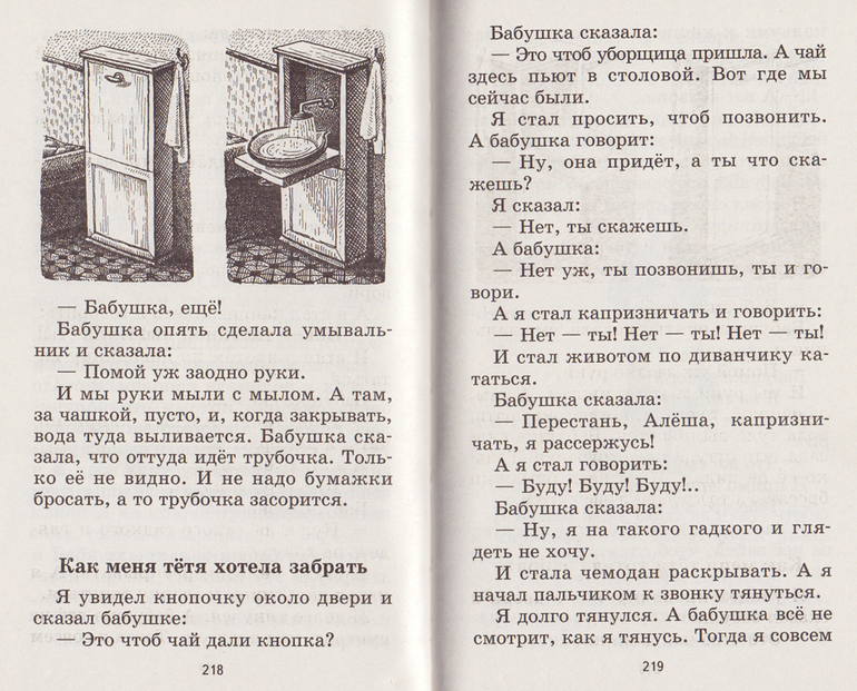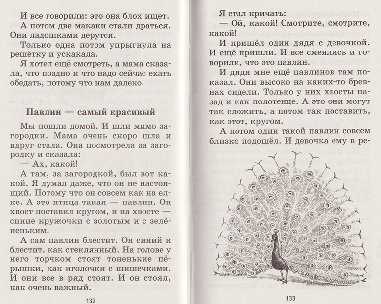 В книге нет цветных картинок, зато достаточно много черно-белых. Шрифт очень крупный. Странички тонкие.В первой части режет слух как мама всё время ругает своего сына(( называет его гадким, ну очень часто звучит "фу, какой гадкий мальчик". Я эти "мамины фразы" пропускала при чтении.![]()